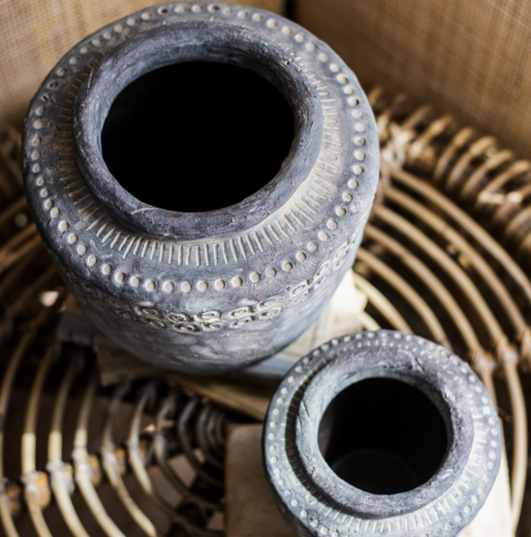 Vase / Pot / Flower Pot / Concrete Pot DIMENSIONS & WEIGHT [Small] 4.9" W Top X 6.7" W Bottom X 6.3" H; 5 lb [Large] 6.5" W Top X 9.4" W Bottom X 10.2" H; 13.2 lb MATERIAL Concrete COLOR Gray