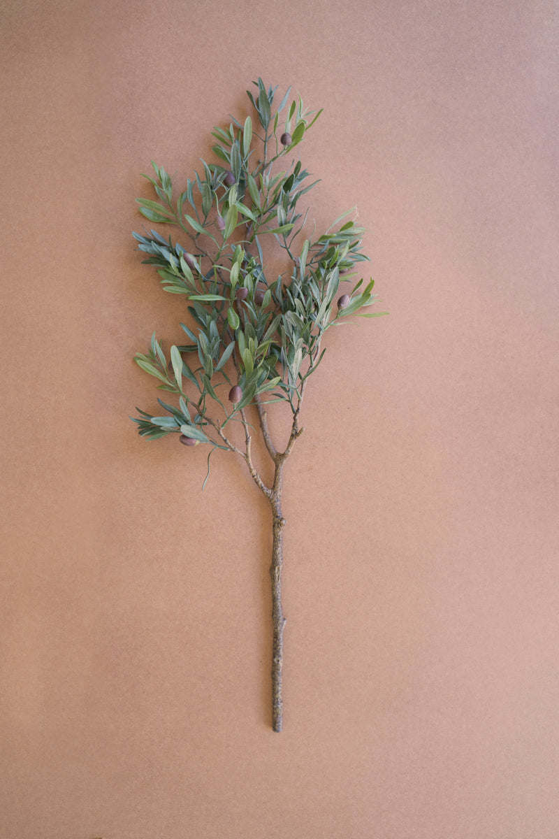 Add height and greenery with this 32" olive branch. Extend peace to your home and all who enter with this artificial olive branch in your entryway. Try one or a bunch in an empty planter or vase.