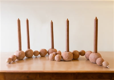 The Beads Taper Holder in white wash clay, measuring 43 inches long with a diameter of 3.5 inches, is a distinctive and elegant decorative piece. Crafted from clay, its bead-like design adds a sophisticated touch, perfect for holding taper candles. The white wash finish enhances its timeless appeal, making it a versatile addition to various decor styles.