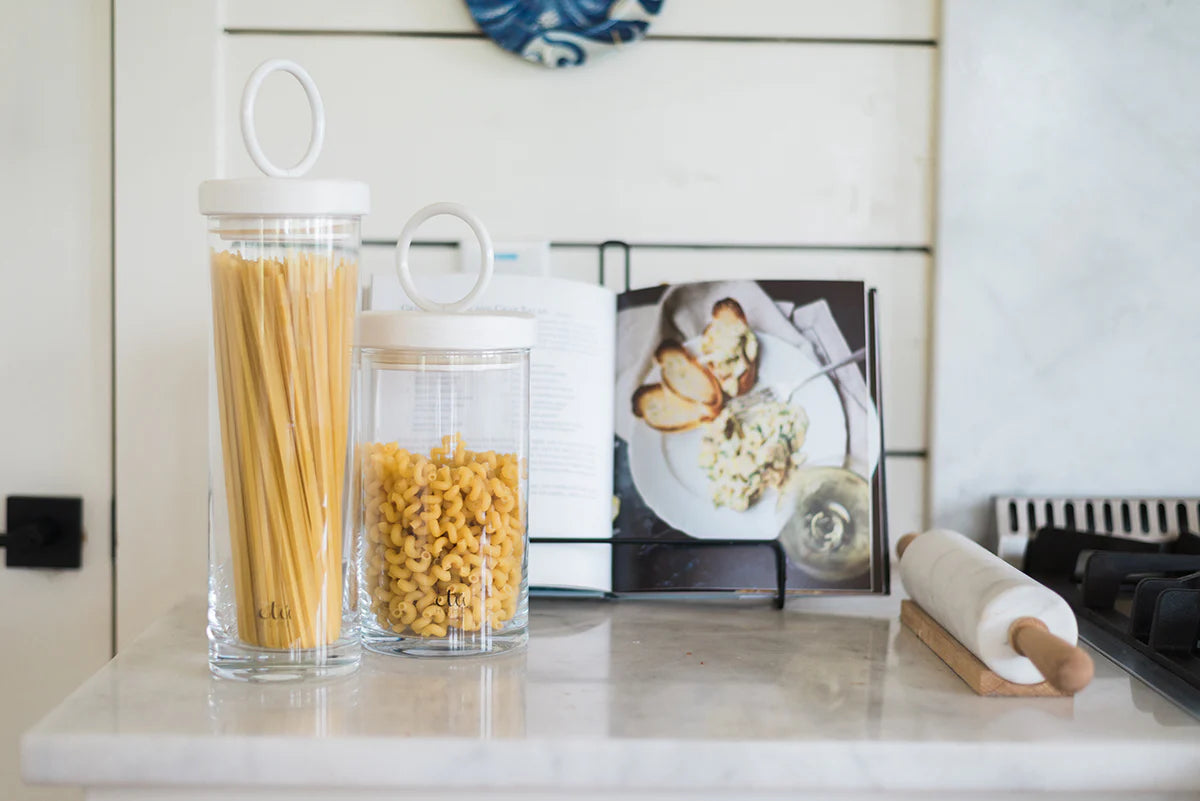 The pantry cupboard just got a refresh. Why hide away all of your beautiful eats when you could be showcasing them? This glass canister is adorned with a hand forged iron and reclaimed wood top, fit with a gasket to keep everything sealed fresh. The beautiful kitchen canisters can add style, beauty and fun back into your cooking experience. Embrace the look of yummy treats and snacks by showcasing them in the canister set in your pantry cabinet or kitchen shelves.