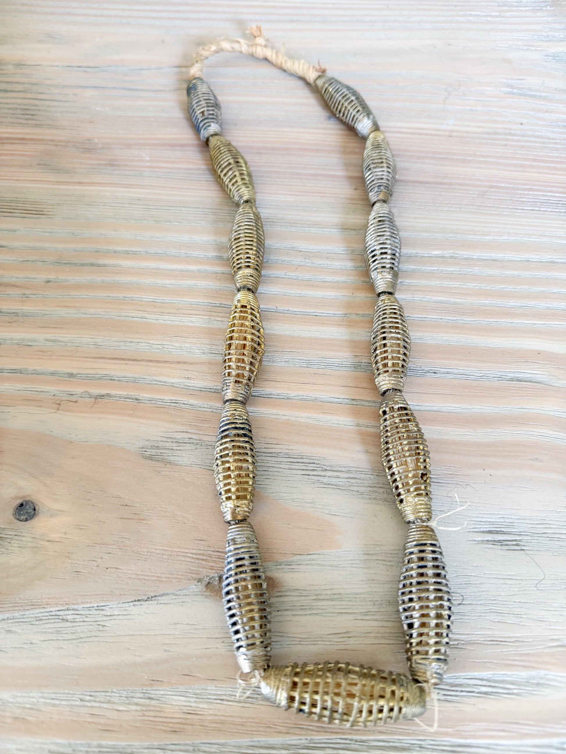 The Brass Beads Mix Style are individually crafted through a "lost wax process." Done by artisans in Ghana, the process involves pouring molten metal into a wax mold. The selection includes Baule and Round Filigree designs. The Baule beads, in particular, are increasingly challenging to source. The bead design will vary. Style and shape will vary.