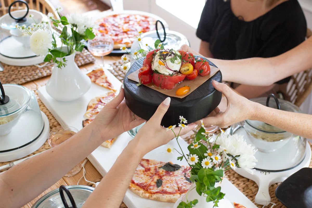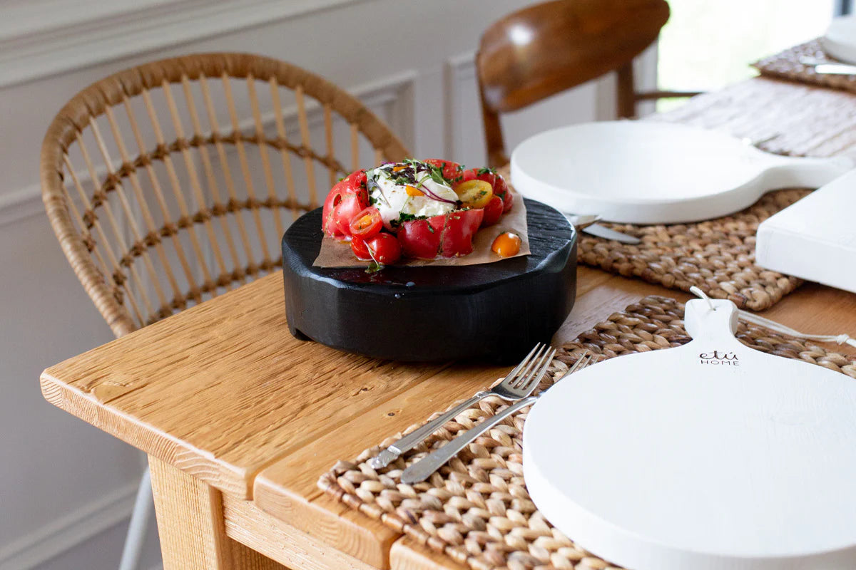 etúHOME’s serving boards are intended for serving only and should not be used for cutting or chopping. To protect and preserve the integrity and longevity of the piece, we recommend using a barrier such as parchment paper, a plate or a bowl for non-dry and hot ingredients.