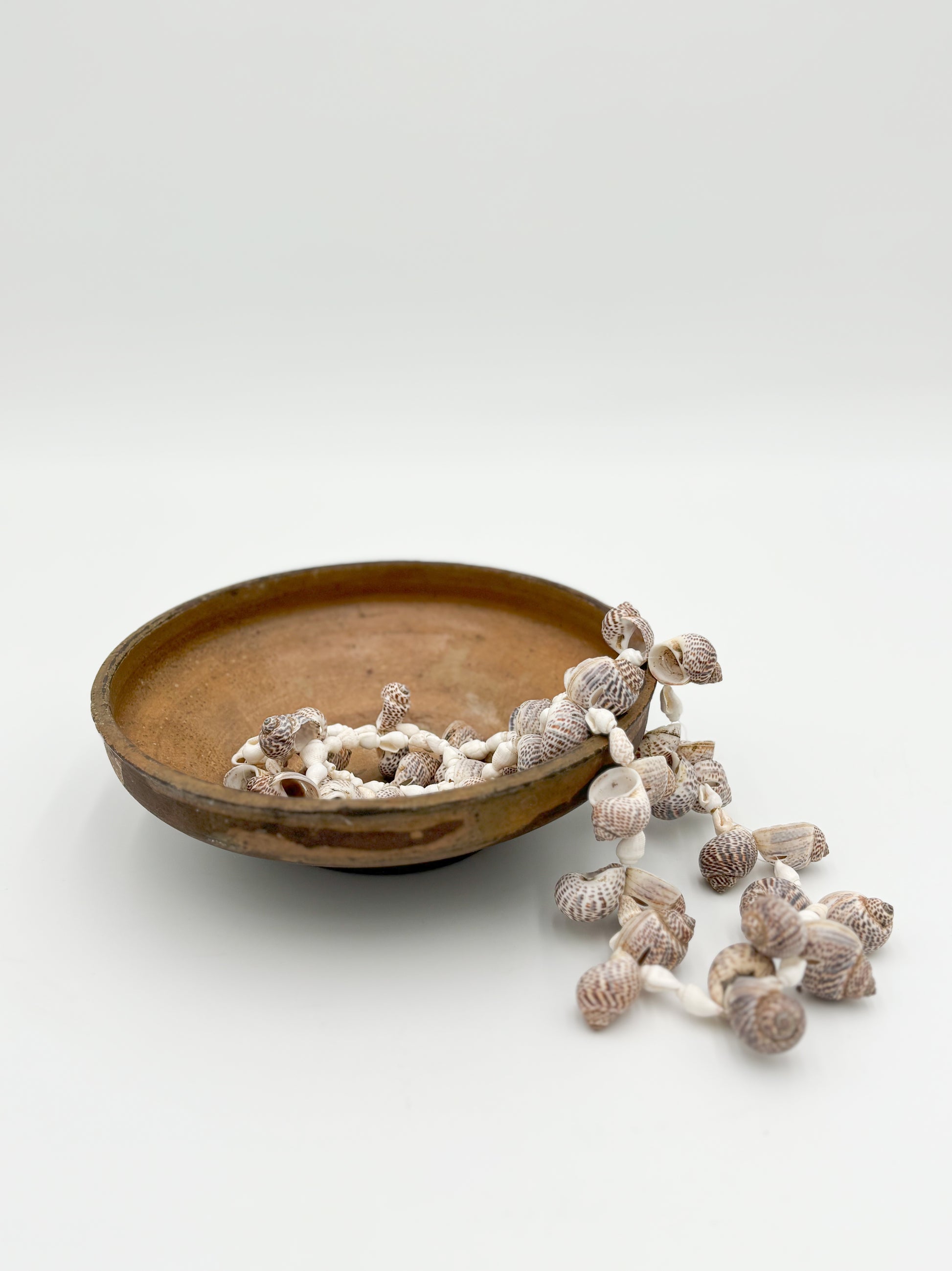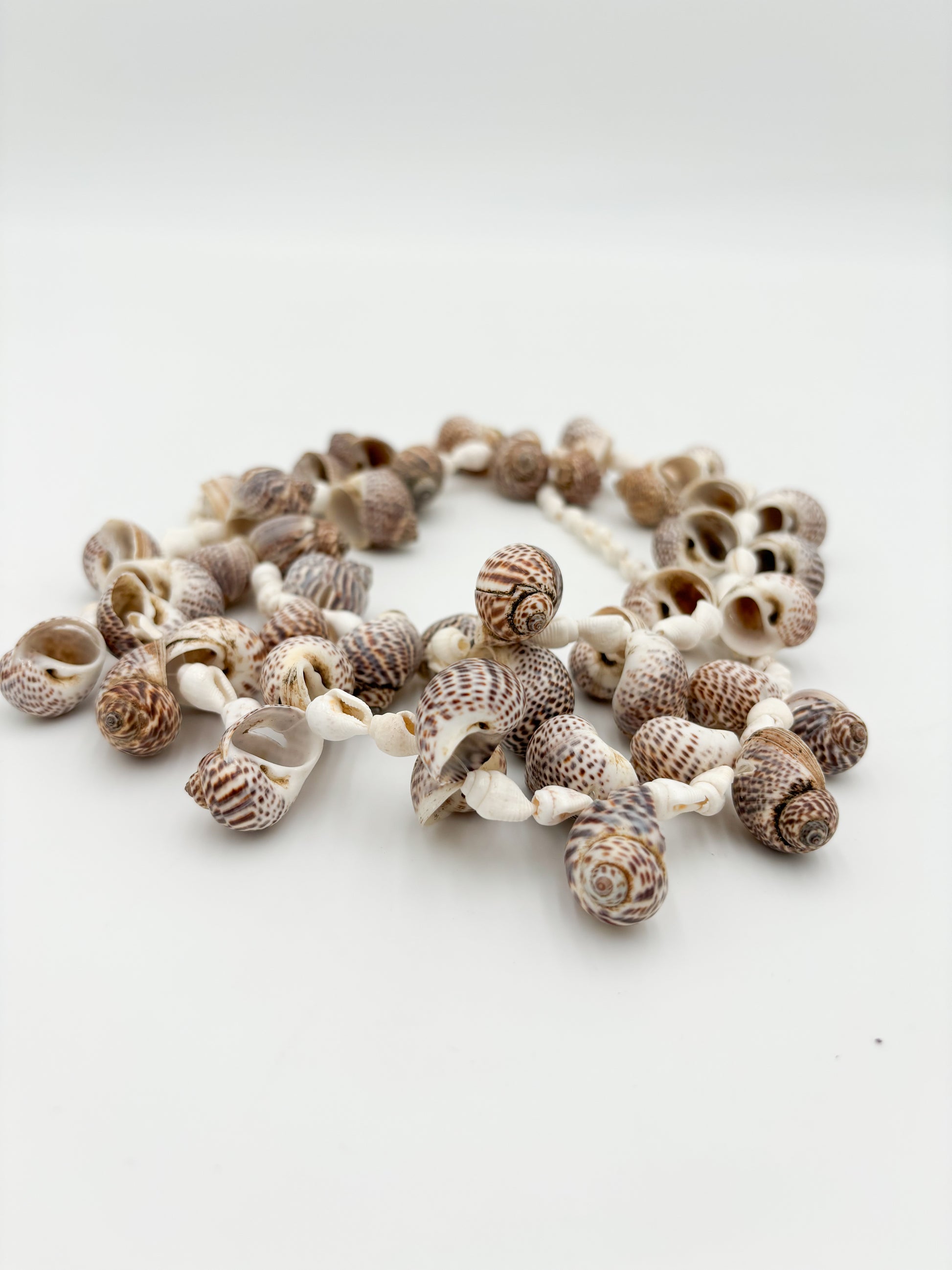 Strung with predominately white small and large shells, the Captiva Shell Strand uses coiled sea snail shells as the design emphasis. White Nassa shells are used as a counter-accent to the brown snail shells. The Captiva Shell Strand can be used as a necklace or as a decorative accent draped from a bowl.
