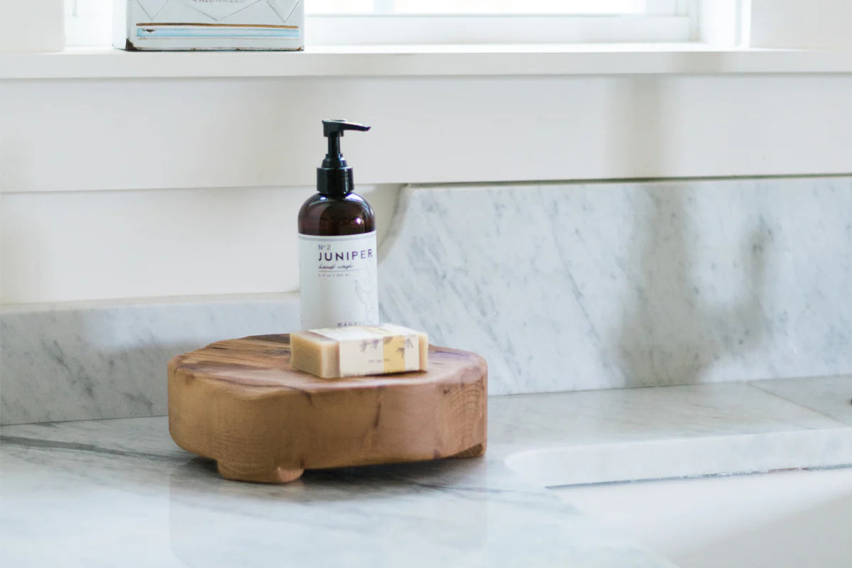 To prevent and resolve surface stains, wipe the surface clean with hot soapy water immediately after using and then dry with a clean, dry dish towel. Never submerge your wood board in water and avoid abrasive cleaning products. Brightly colored foods such as berries, turmeric and mustard may stain white and lighter waxed boards. To remove these tougher stains, reference our website for eco-friendly cleaning options.