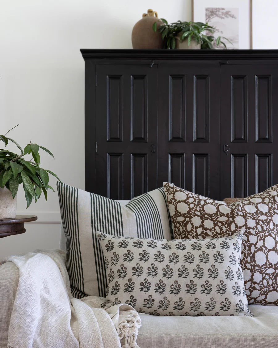 Designer Astoria Striped Linen Pillow Cover in Dark Green