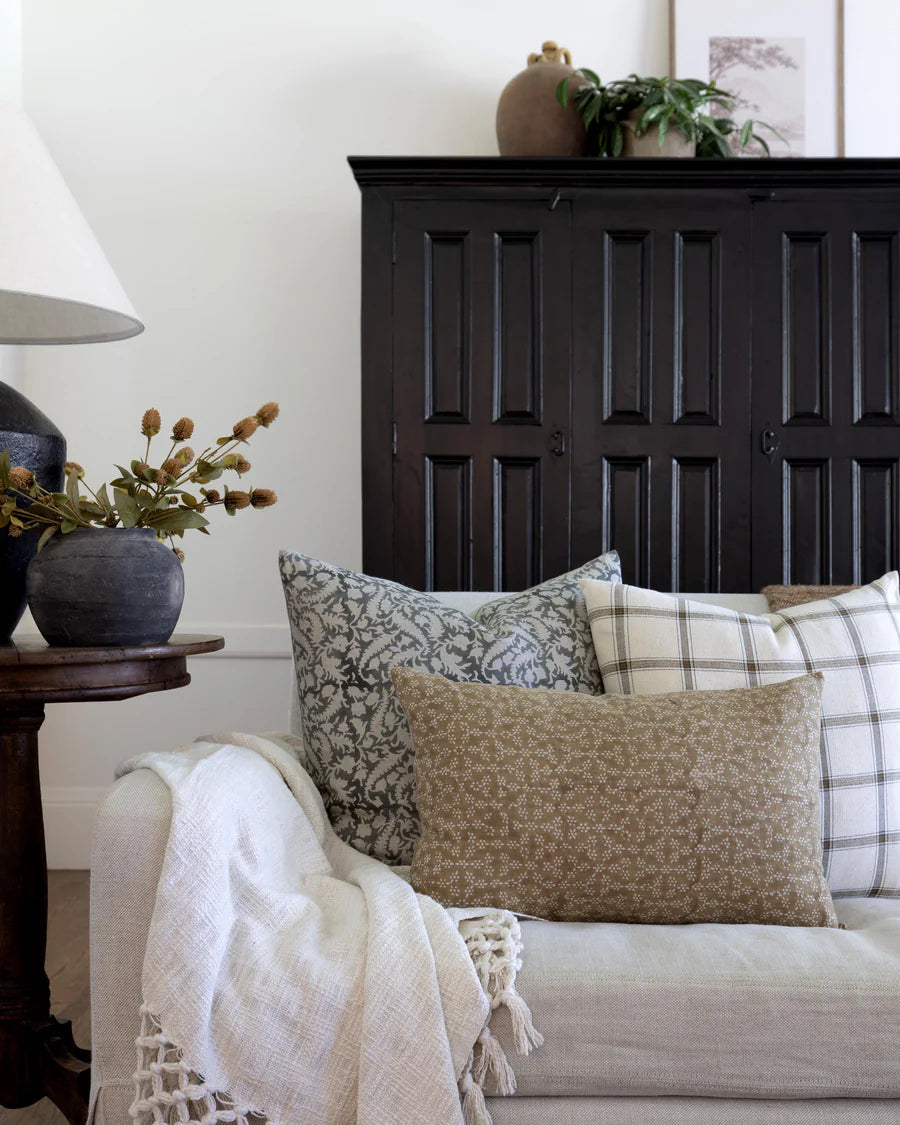 Our pillow covers are all professionally sewn in the USA with over-locked finished edges to prevent fraying and and feature an invisible zipper
