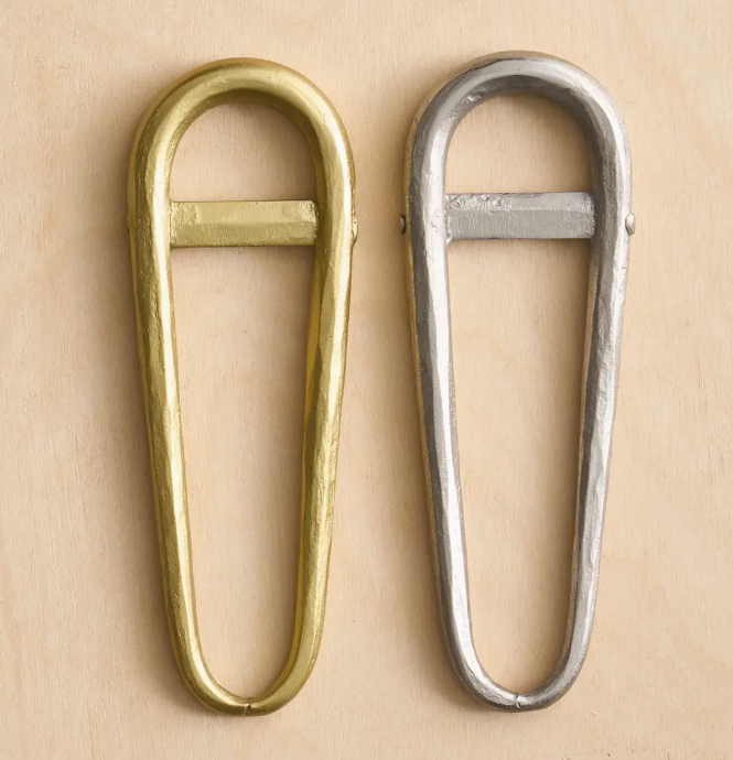 These snowshoe-shaped bottle openers are mightier than they appear. Heavy gauge Stainless Steel wire is hammered, then given a brass or pewter finish that works with any decor. The low-profile, recurving design allows them to be hung from a hook or keychain for frequent use.