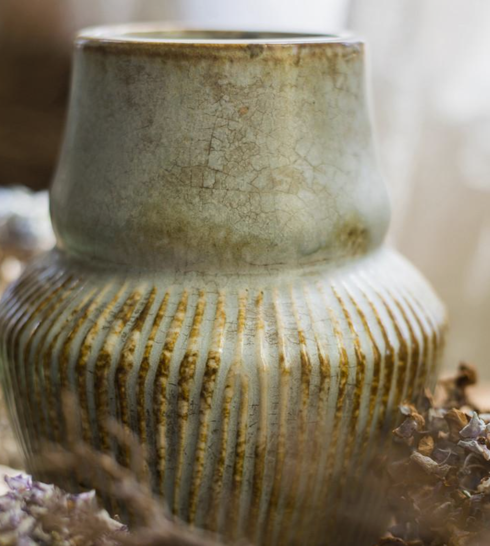 DIMENSIONS & WEIGHT [Small] 3.3" W Top Opening X 4.9" W Bottom X 5.5" H; 1 lb [Large] 3.7" W Top Opening X 6.1" W Bottom X 7.1" H; 1.5 lb MATERIAL Ceramic, Glazed Finish, Textured COLOR Light Blue, Light Turquoise, Brown, Beige, Mixed Colors